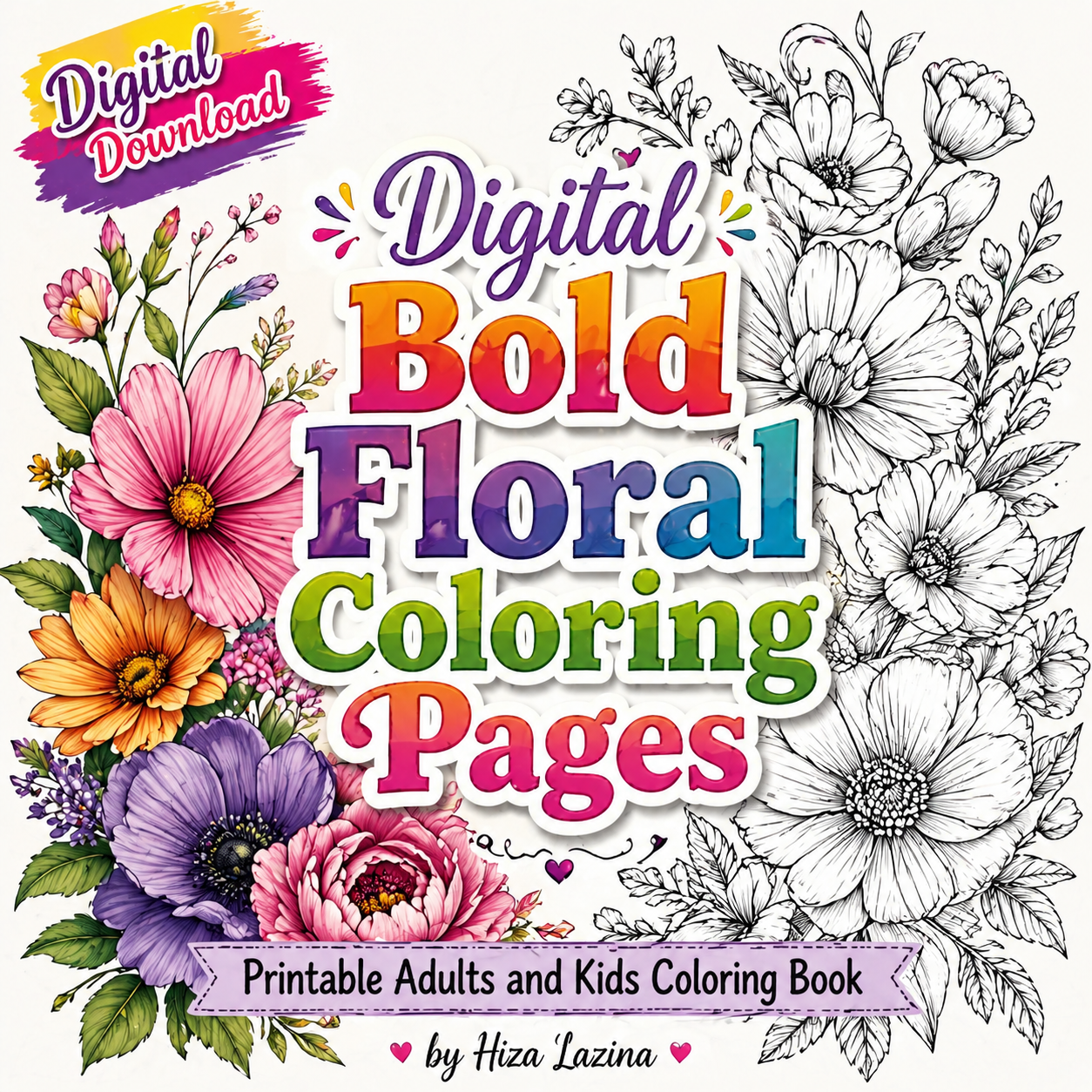 - Total 40 floral coloring pages