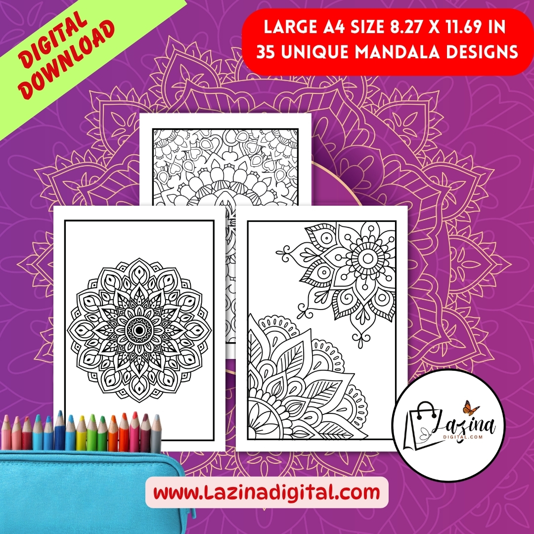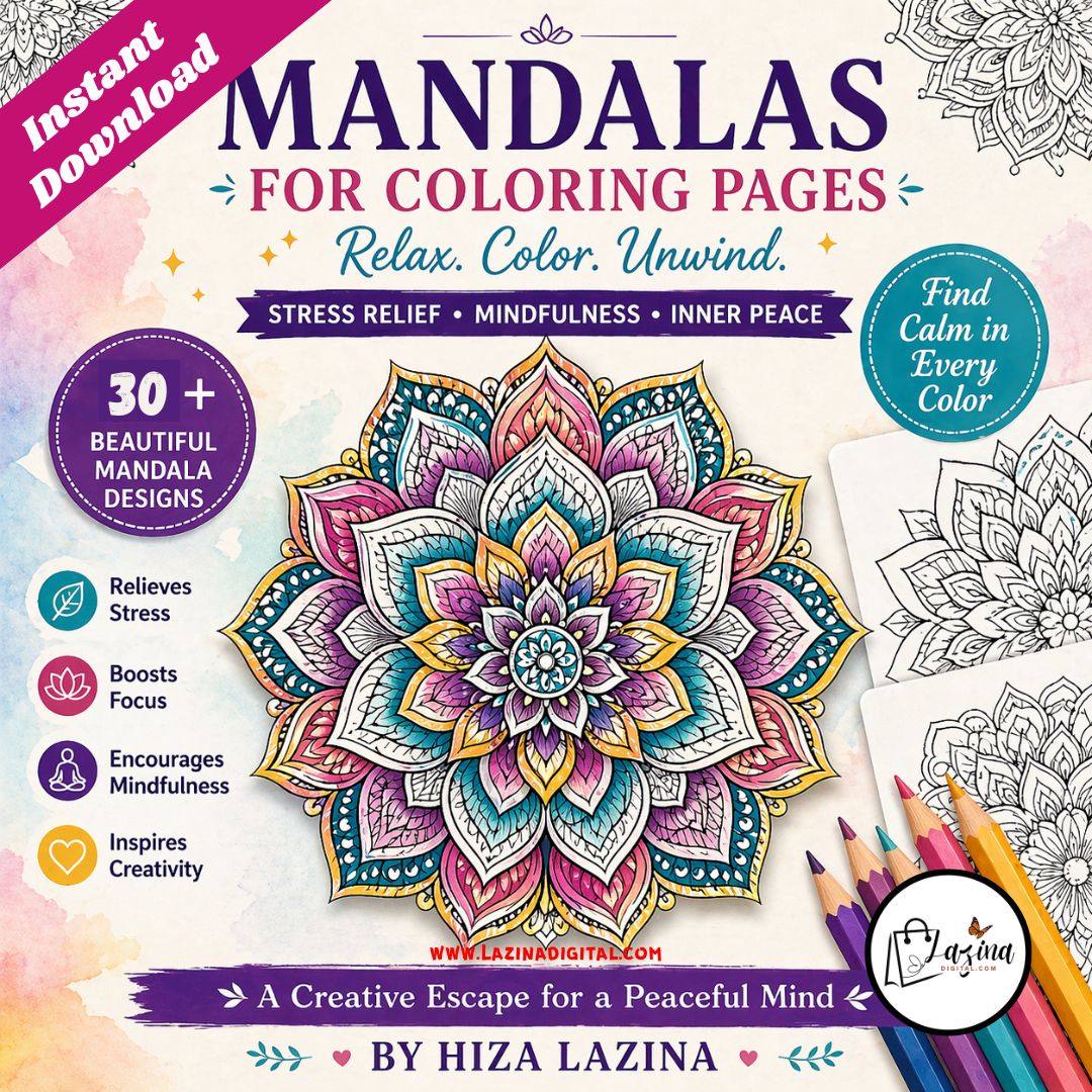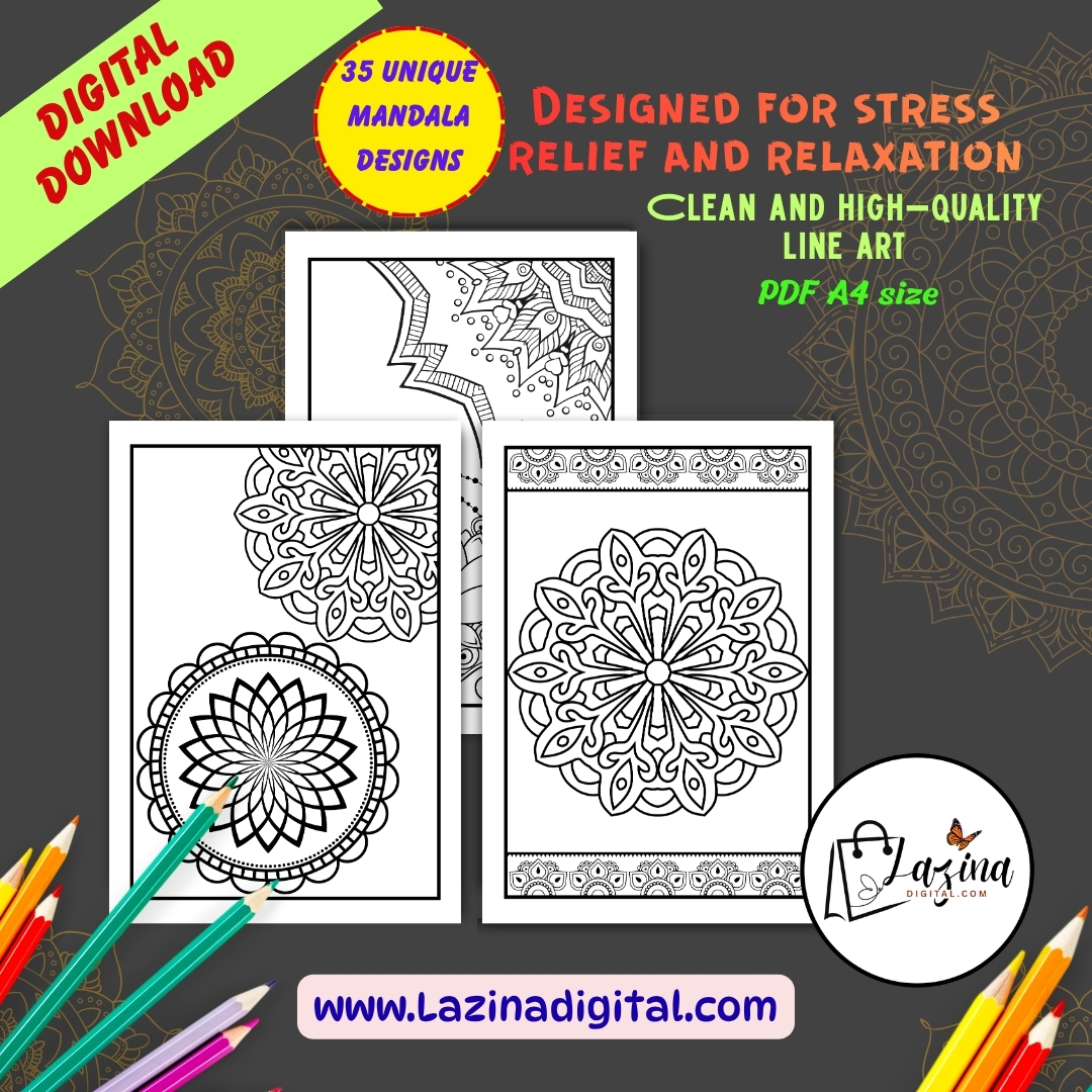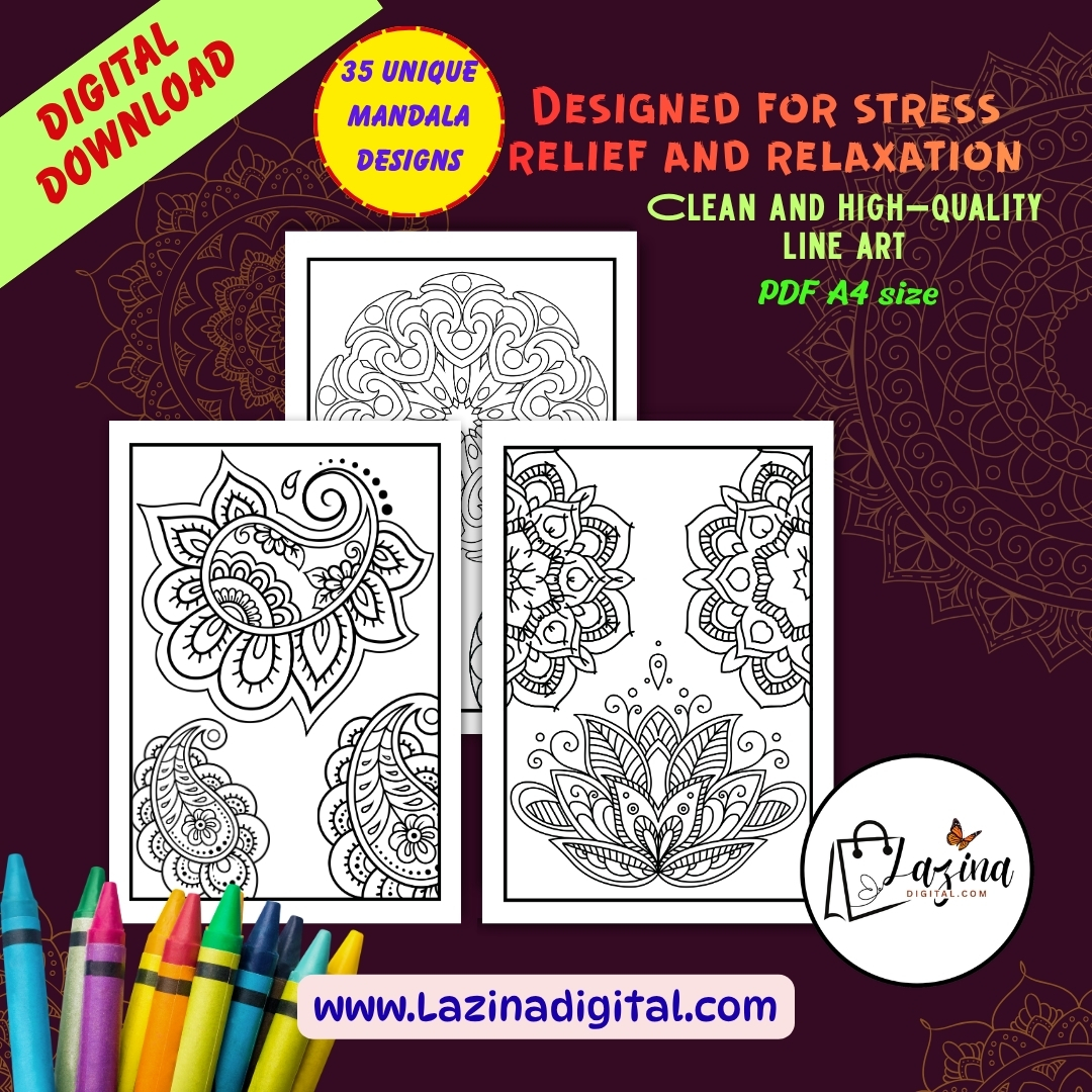 Downloadable Mandalas Coloring Book for Stress Relief is a carefully designed printable and digital coloring book created for relaxation, focus, and creative expression. This book includes 35 unique mandala designs, with selected pages offering double designs to give you more variety and extended coloring time. Each mandala is created with clean and balanced patterns that are suitable for both beginners and experienced colorists. The designs range from simple to detailed, allowing users of all ages to enjoy a smooth and engaging coloring experience. This downloadable mandalas coloring book is ideal for stress relief, mindfulness, and daily relaxation. Coloring mandalas helps improve focus, reduce mental fatigue, and support calm thinking. You can print the pages as many times as needed or use them digitally on your tablet. The flexible format makes it perfect for home use, travel, or quiet personal time. This product is suitable for adults, teenagers, and anyone looking for a simple and effective way to relax through creativity. The pages are designed in large A4 size (8.27 x 11.69 inches), perfect for comfortable coloring with crayons, markers, or colored pencils.