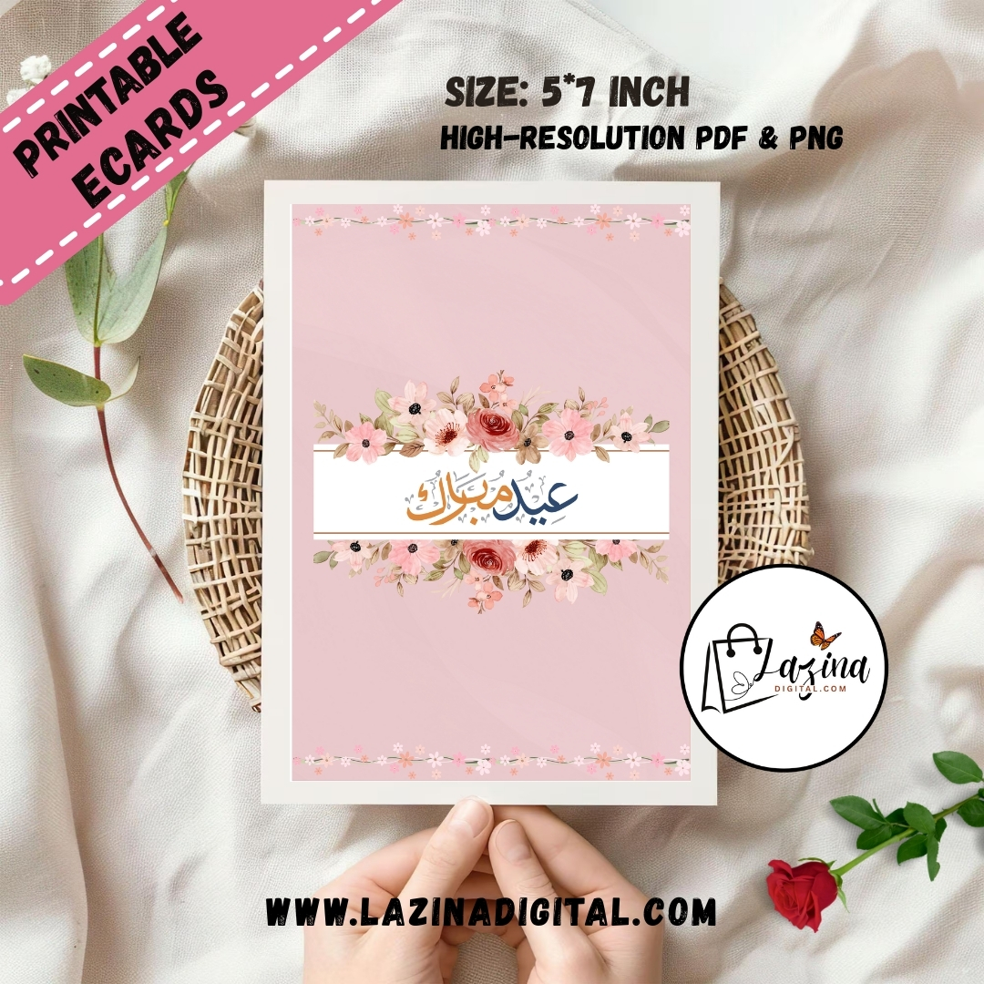 This Eid Mubarak printable and digital ecard features timeless Urdu calligraphy placed gracefully at the center, celebrating the beauty and spirituality of Eid. Designed with a clean, elegant layout and refined details, this Eid Mubarak printable and digital ecard is perfect for sharing heartfelt wishes with family and friends. Whether sent online or printed as a keepsake, this Eid Mubarak printable and digital ecard brings tradition, faith, and warmth together in a meaningful design suitable for all ages.