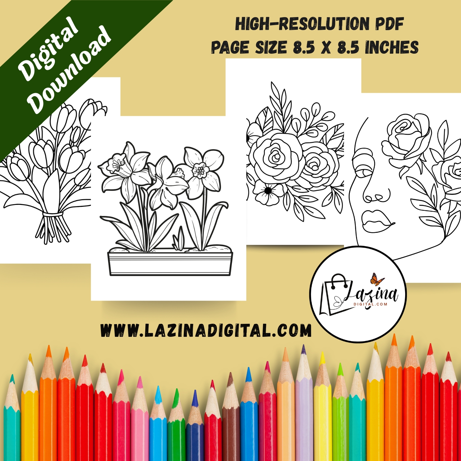 πΈ Printable Floral Coloring Pages | 54 Unique Designs | Square Format (8.5″ x 8.5″) | For Adults & Kids | Instant Digital Download πΈ