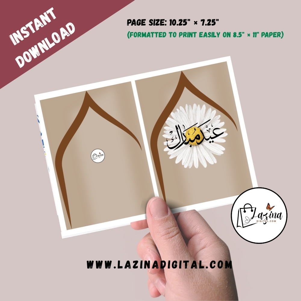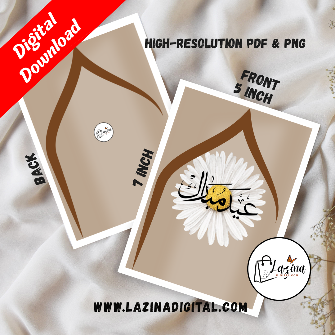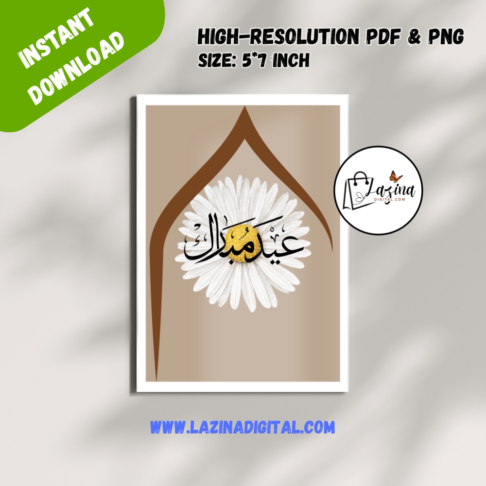 A Celebrate Eid with this elegant Eid Mubarak printable eCard featuring beautiful Arabic calligraphy. Designed for both digital sharing and home printing, this high-resolution digital download is perfect for sending warm Eid wishes to family and friends instantly.