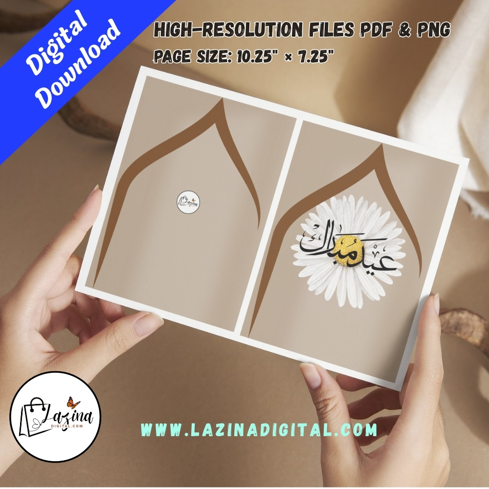 The card comes in high-resolution PDF and PNG formats, ensuring crisp and professional results every time. With its landscape orientation and print-friendly layout, it is ideal for Eid celebrations, personal greetings, or thoughtful digital gifting.