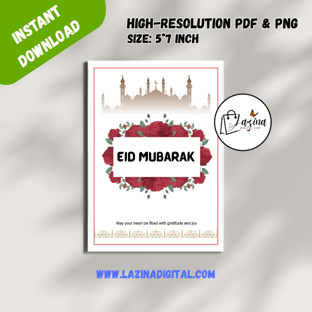 Whether you choose to print it at home or send it digitally, this high-quality printable Eid card offers flexibility and convenience. Its clean and contemporary design ensures your Eid wishes feel both meaningful and stylish.