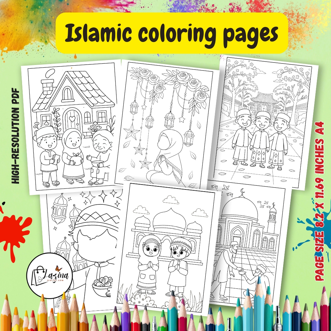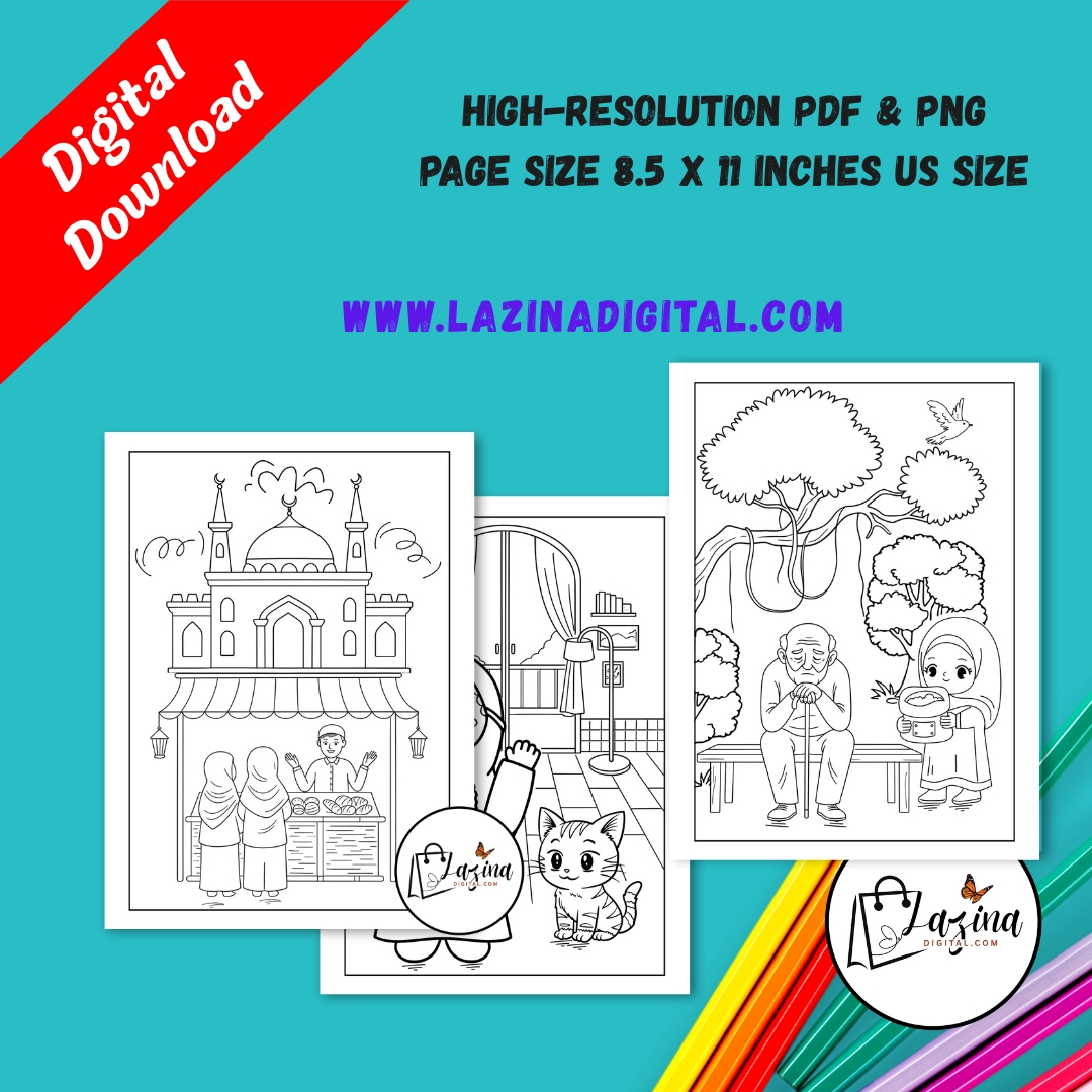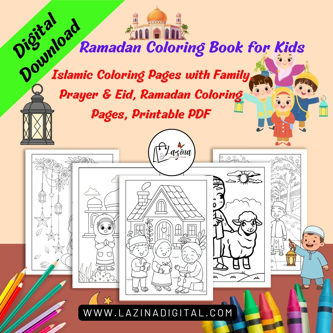π Premium Islamic Coloring Pages Printable PDF designed especially for children to enjoy creative learning during the blessed month of Ramadan.This beautiful coloring book includes 66 unique Ramadan-themed designs featuring Islamic traditions, family moments, kids moments , prayer, fasting, mosques, lanterns, and Eid celebrations. Each page is created with clean black outlines and premium-quality illustrations, making it easy and fun for kids to color while connecting with the spirit and values of Ramadan.