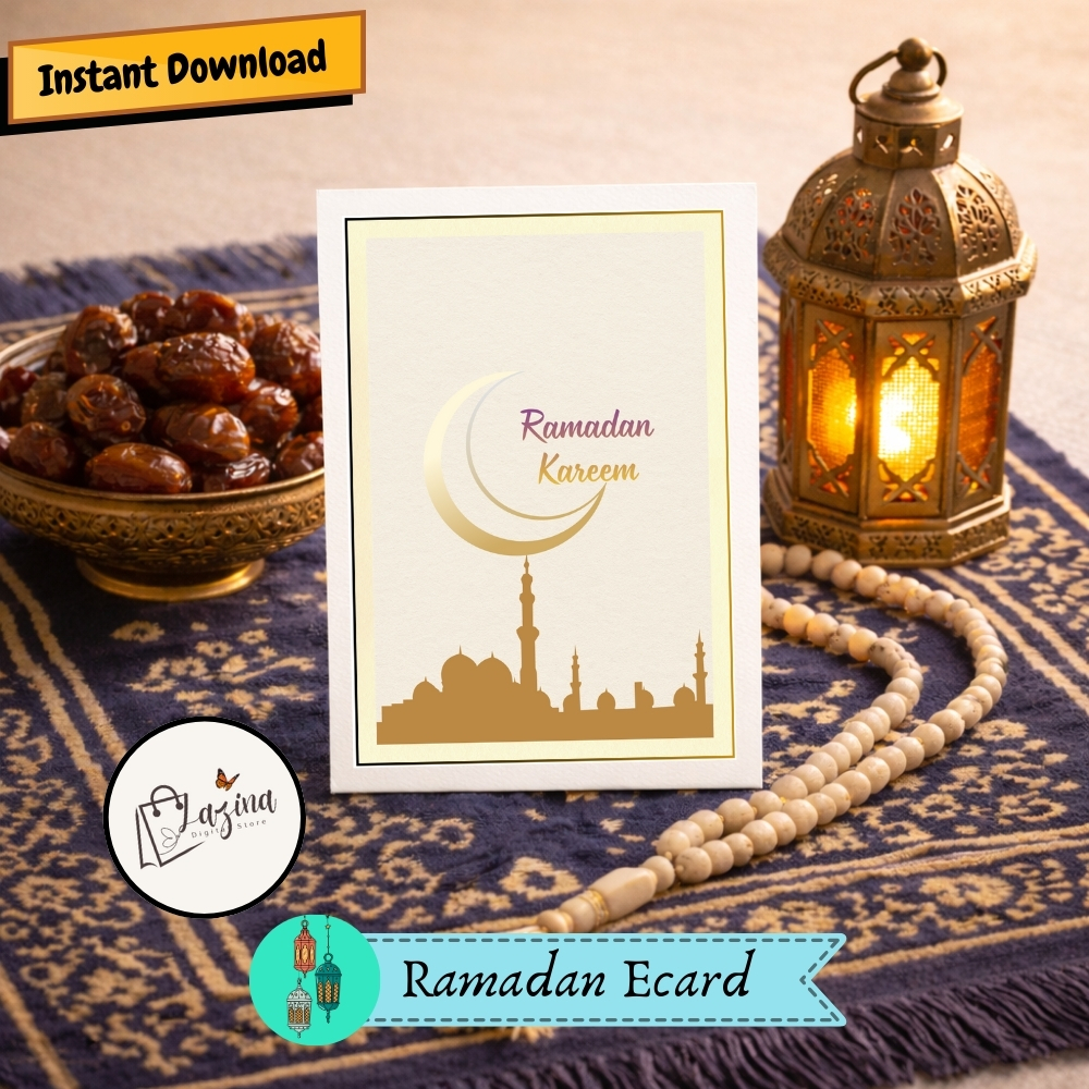 This Printable Ramadan Kareem Digital Ecard features a beautiful English font placed at the center, paired with a subtle mosque illustration at the lower part of the design. The clean and minimal layout creates a calm and spiritual atmosphere, reflecting the essence of Ramadan. Designed with simplicity and elegance, this Ramadan Kareem digital ecard allows the message to stand out without distraction. Perfect for sharing digitally or printing at home, this printable Ramadan Kareem digital ecard is a thoughtful way to send blessings, prayers, and warm wishes during the holy month.